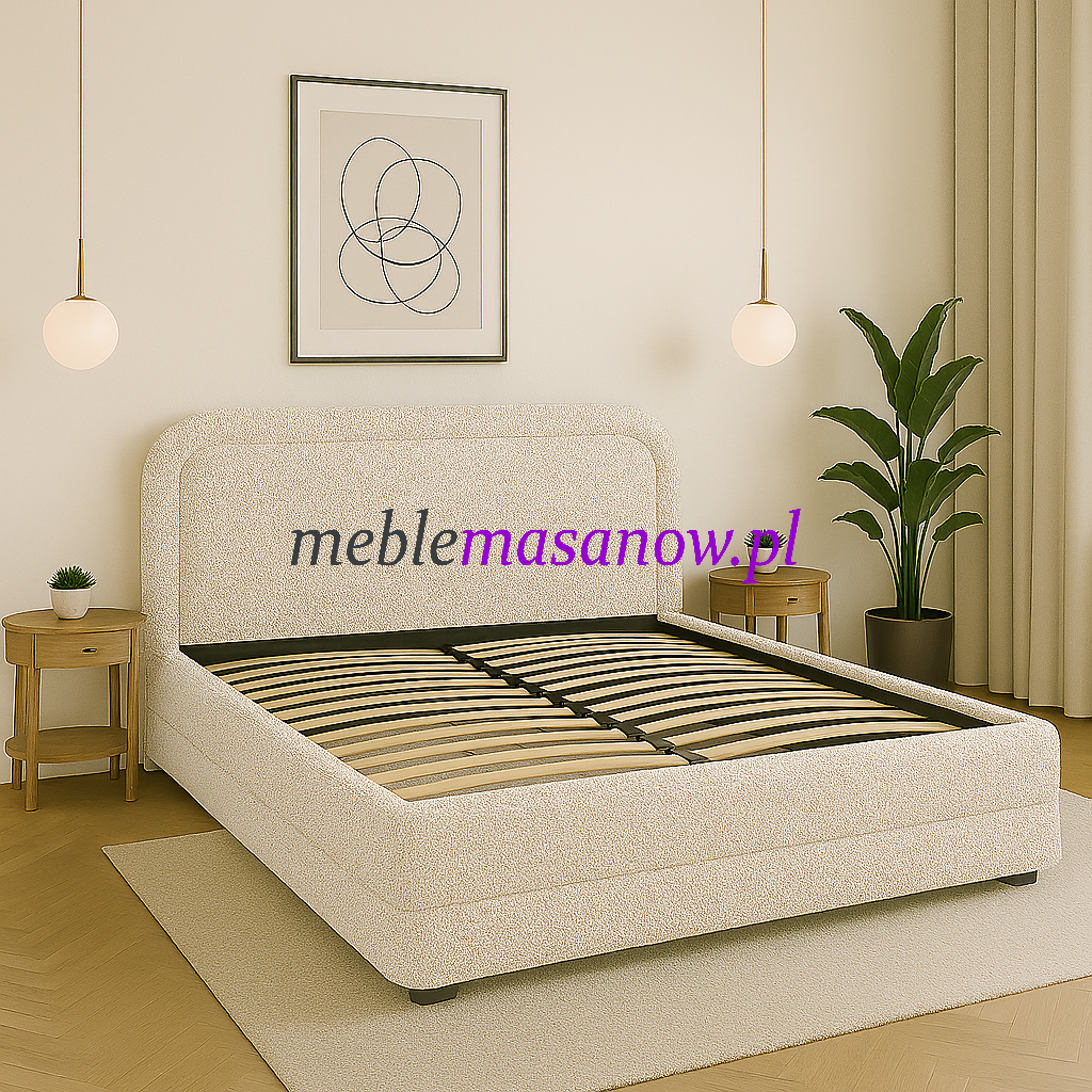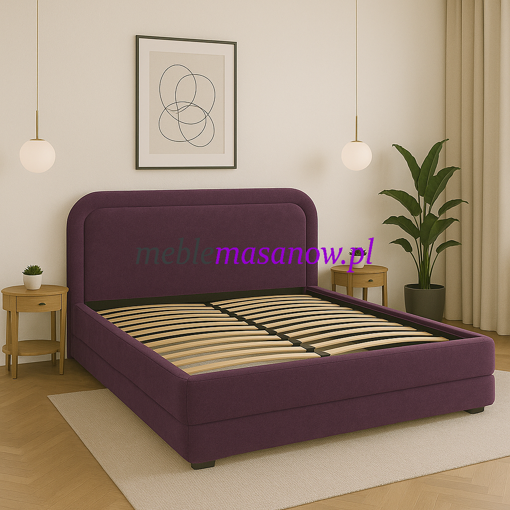 Dzięki możliwości wyboru tkaniny z szerokiej gamy kolorów i struktur, łóżko możesz idealnie dopasować do charakteru swojej sypialni – od spokojnych beży po odważne barwy, takie jak butelkowa zieleń, fioletowa śliwka czy klasyczna biel w bouclé.