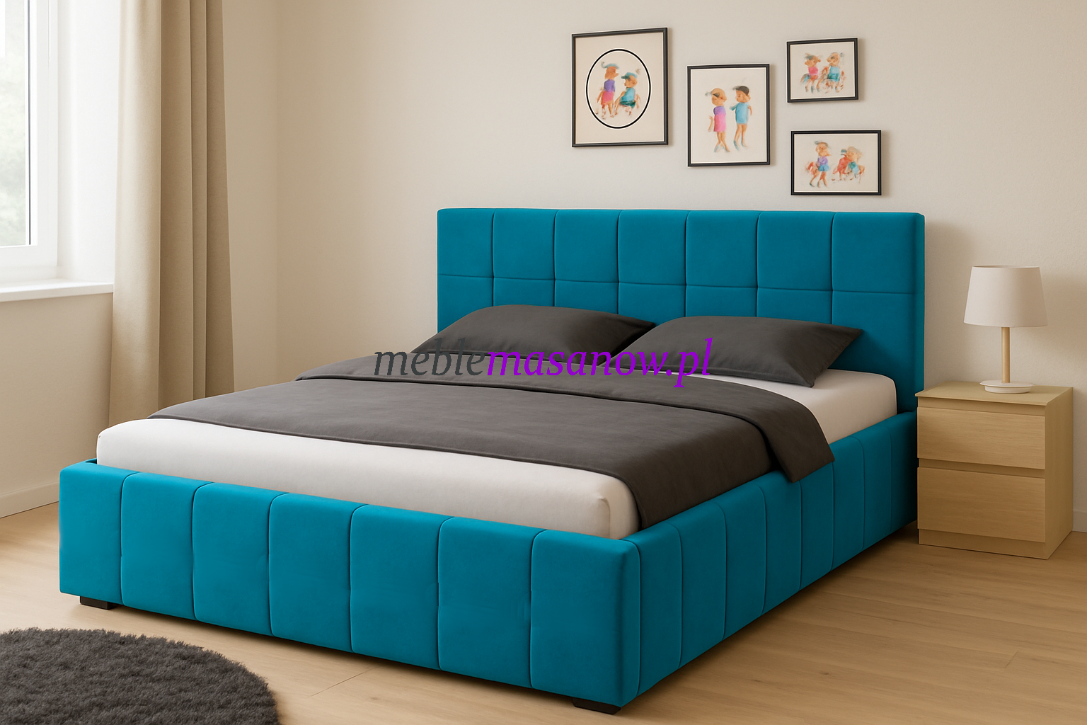 Model wyposażony jest w solidny, drewniany stelaż, który zapewnia odpowiednie podparcie dla materaca oraz trwałość na lata. Dodatkowym atutem jest praktyczny pojemnik na pościel, idealny do przechowywania kołder, poduszek czy innych tekstyliów – to świetne rozwiązanie pozwalające zaoszczędzić miejsce w sypialni.