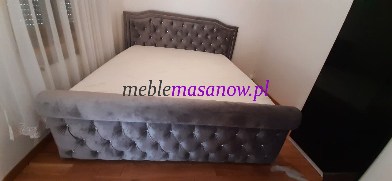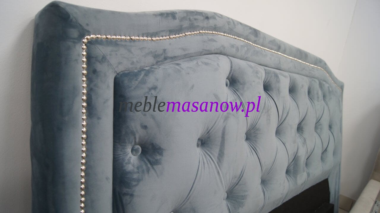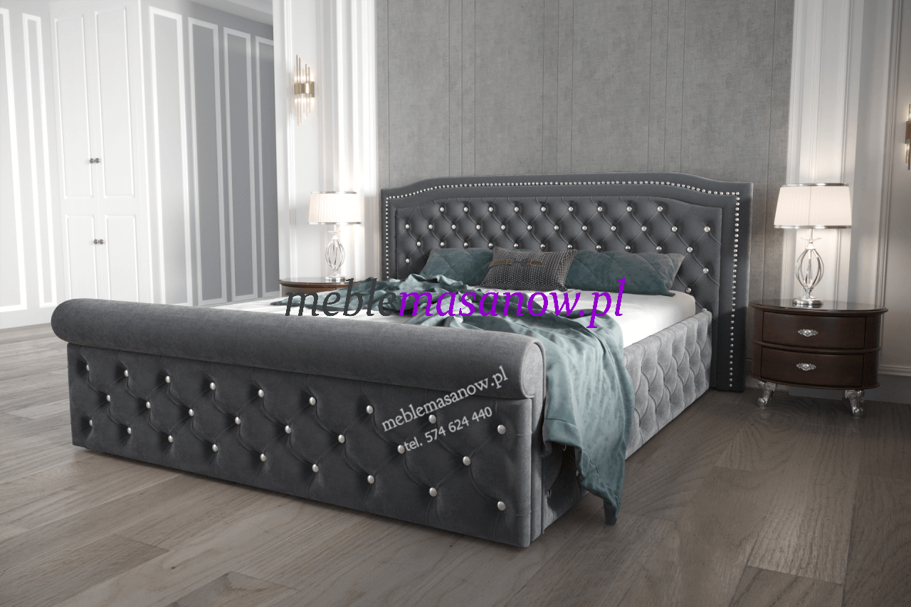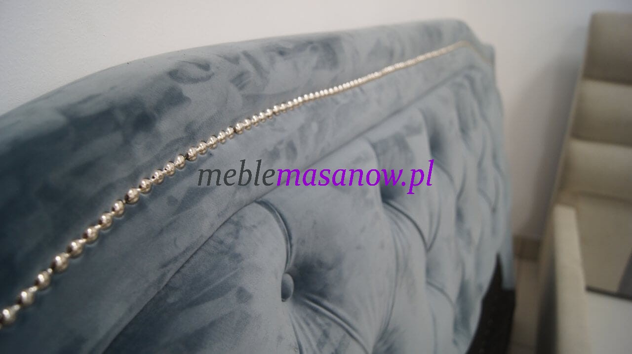 Zagłowie, podnóżek jak i boki pikowane są na grubej sprężystej piance. Pikowanie Chesterfield w połączeniu z symetrycznie rozmieszczonymi kryształkami nadaje wyjątkowego charakteru łóżku oraz dodatkom.