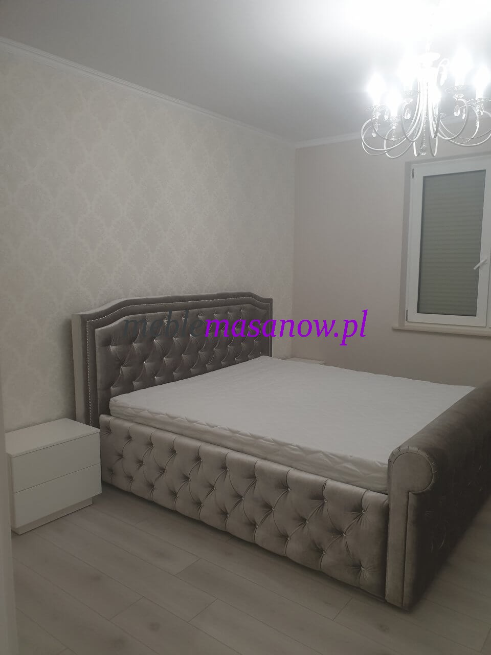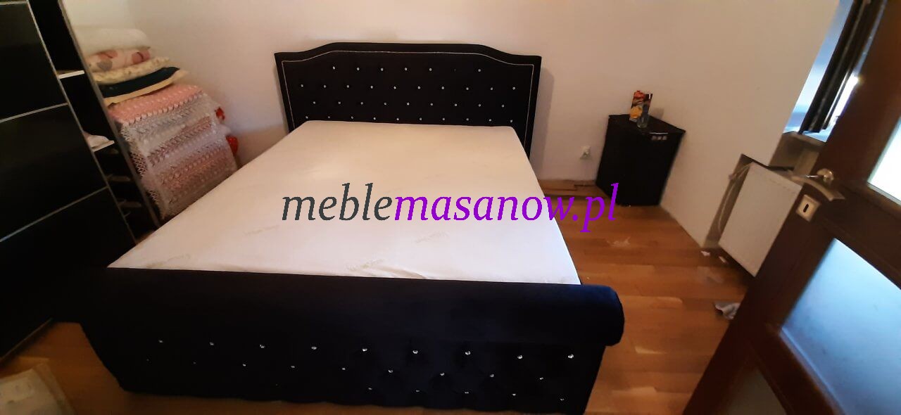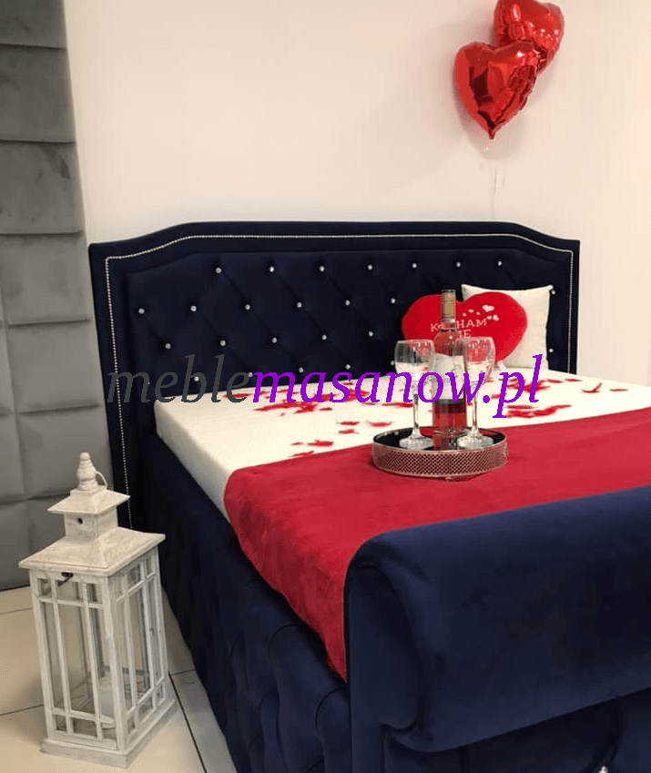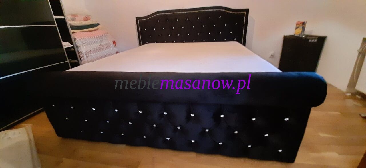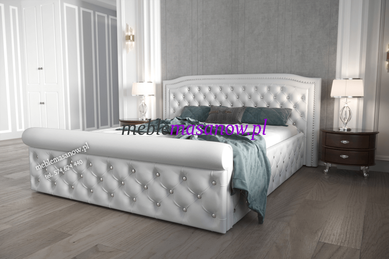 Zagłowie, podnóżek jak i boki pikowane są na grubej sprężystej piance. Pikowanie Chesterfield w połączeniu z symetrycznie rozmieszczonymi kryształkami nadaje wyjątkowego charakteru łóżku oraz dodatkom.