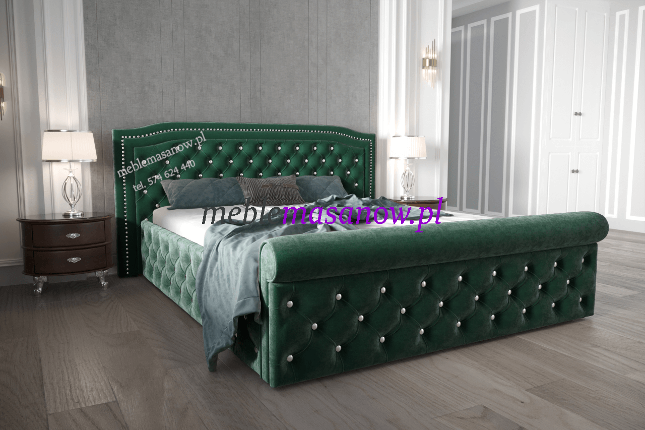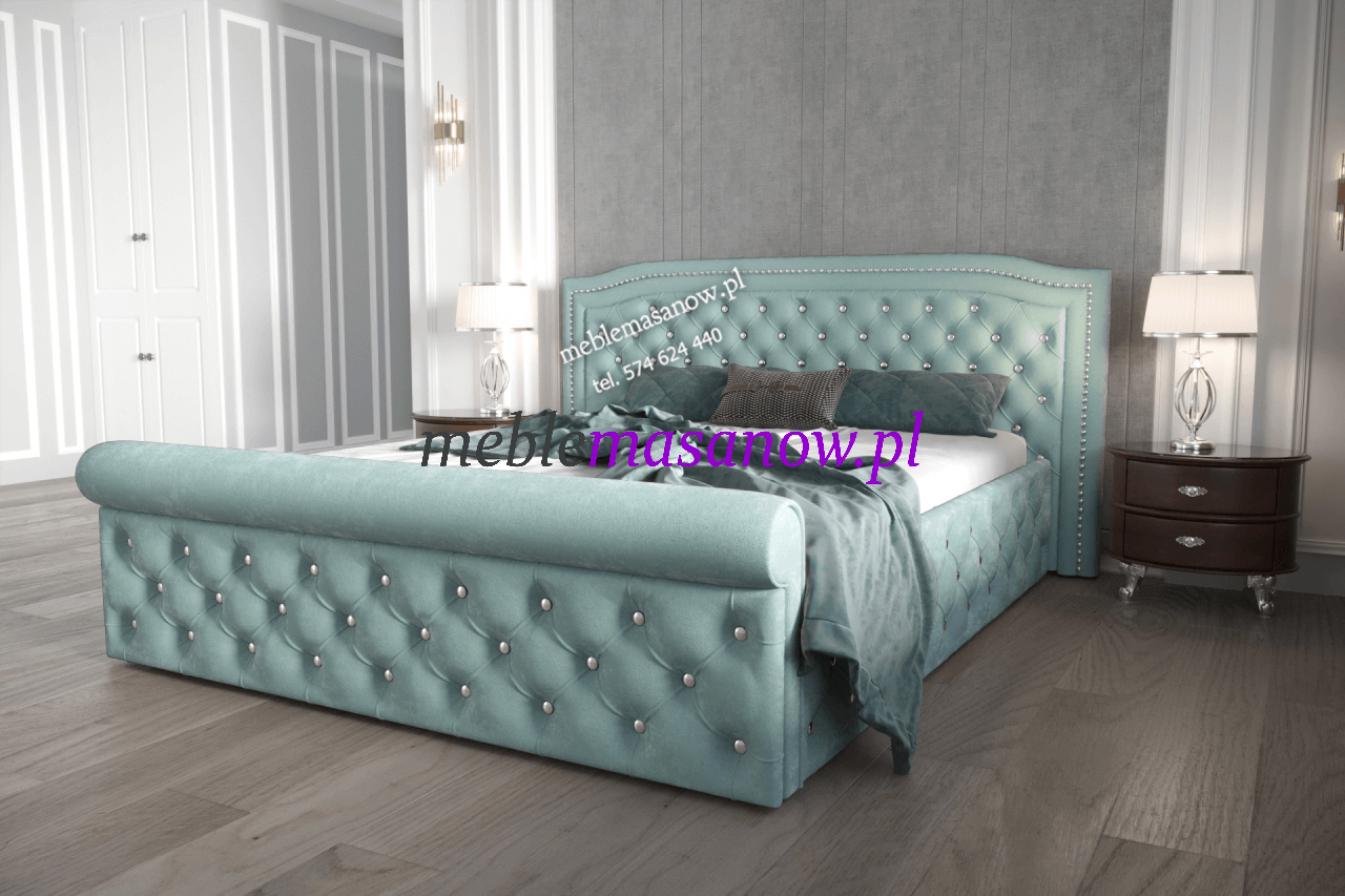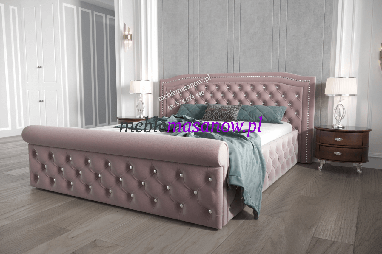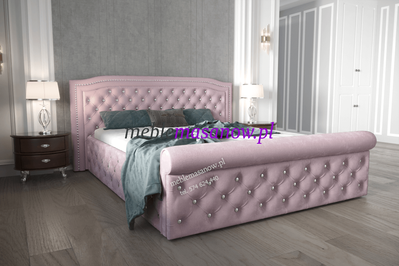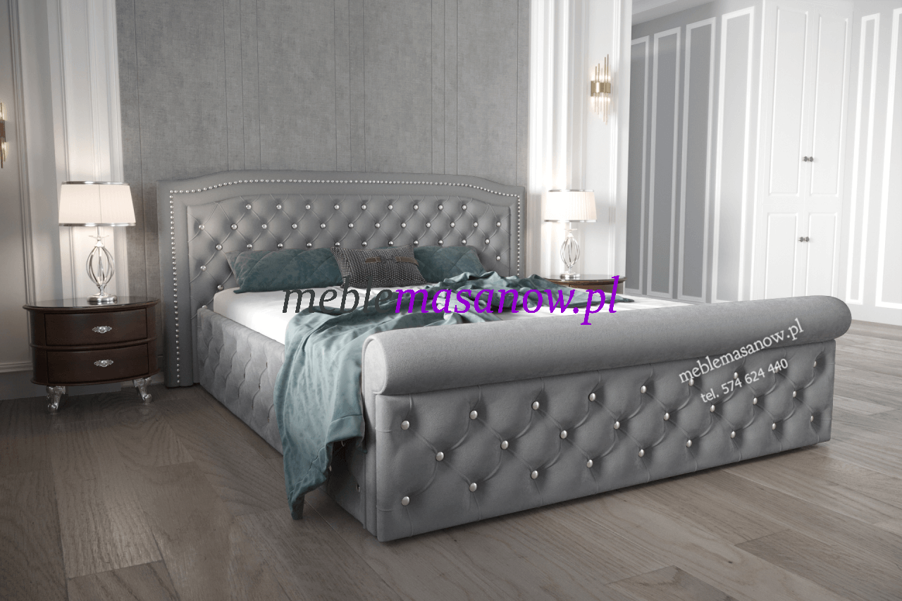 Łóżko dla smakoszy i koneserów piękna ! Wymaga przestrzeni i pewnej ręki w doborze dodatków! Markiza to podobnie jak Baronowa nasza propozycja do sypialni w stylu Glamour łóżko przyciąga uwagę w wykonaniu Premium zadbamy o najmniejsze detale. Wałek na podnóżku nawiązuje do stylu leżanki rzymskiej. Otocz się pięknem, poczuj przyjemną miękkość i ciepło tkaniny, pozwól sobie na odpoczynek lub chwilę relaksu z ulubioną książką czy aplikacją wygodne zagłowie posłuży ci za podparcie.