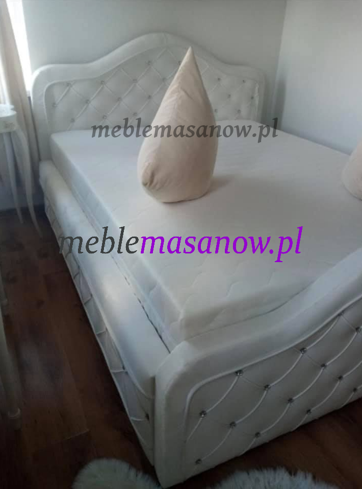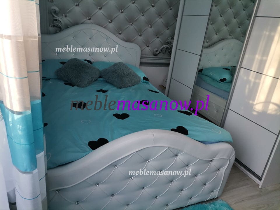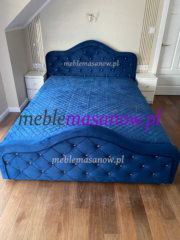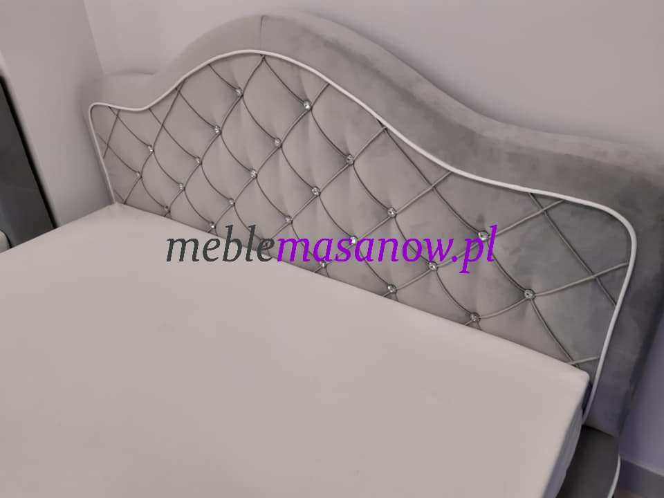 Dodaj nóżki Ludwiki srebrne lub złote tak jak lubisz. Zagłowie i podnóżek w formie wywiniętej fali idealnie podtrzyma twoją pościel. Łóżko w całości pikowane jest kryształkami lub guzikami w kolorze tkaniny. Zagłowie podnózek i boki dodatkowo podkreśla lamówka w kontrastującej ekoskórze białej lub czarnej lub w wersji eleganckiej w kolorze tkaniny. Zdecyduj o wykonaniu zobacz nasze realizacje na realnych zdjęciach od klientów !!!!