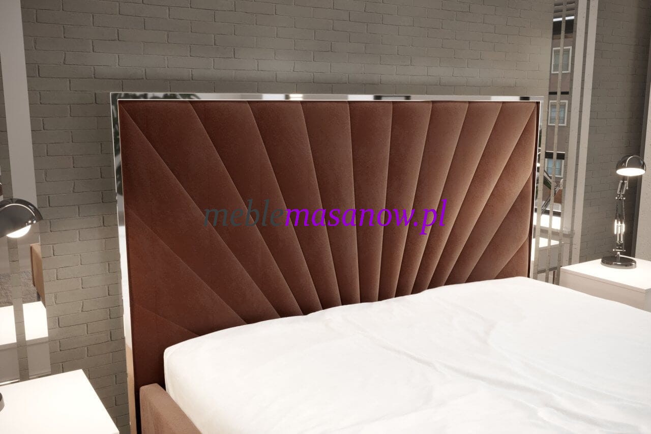 Przeszycia nawiązujące do promieni słońca rozchodzą się z punktu centralnego na wygodnym wysokim zagłowiu 120 cm. Wysokość zagłowia dostosujemy do twoich potrzeb.