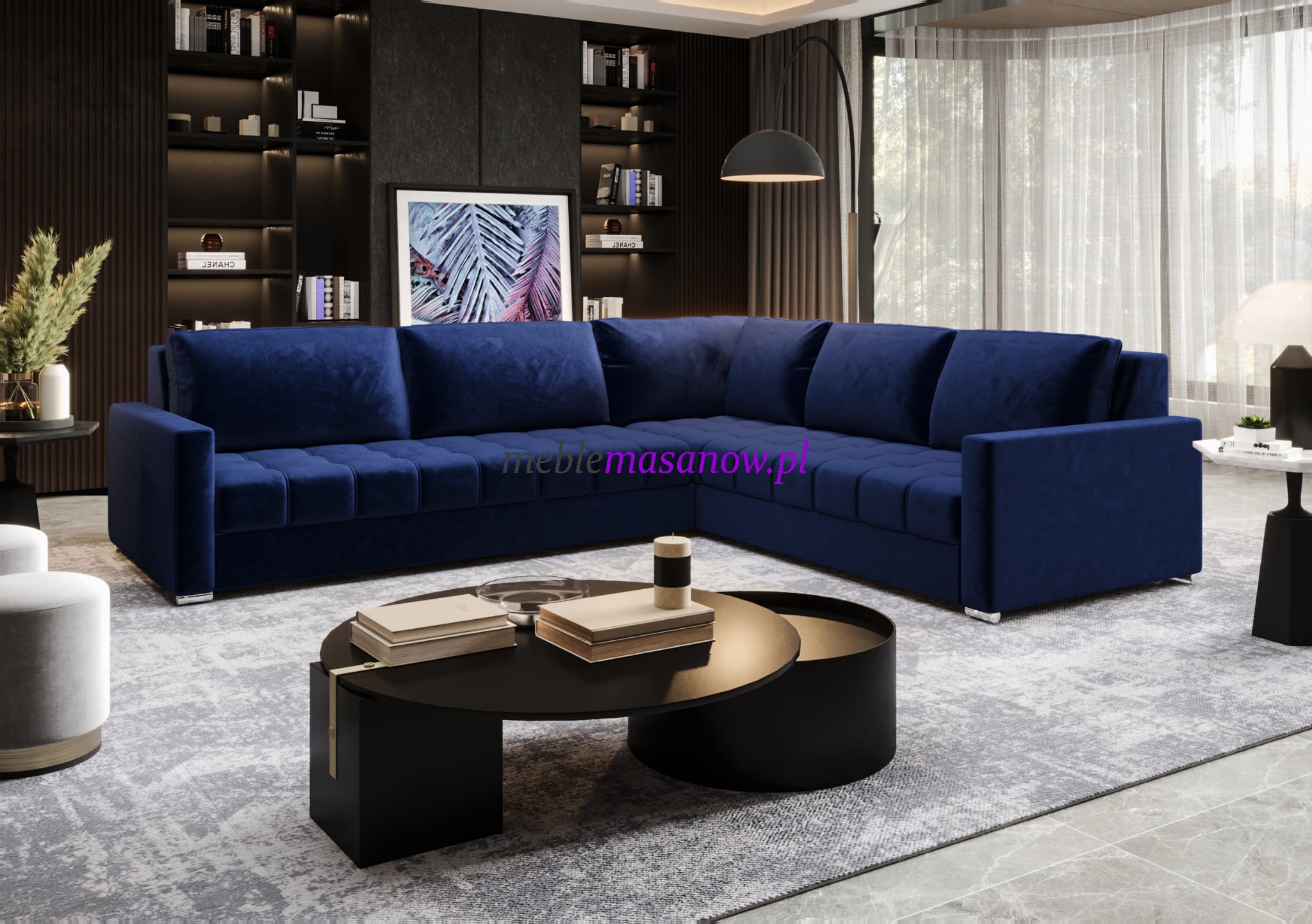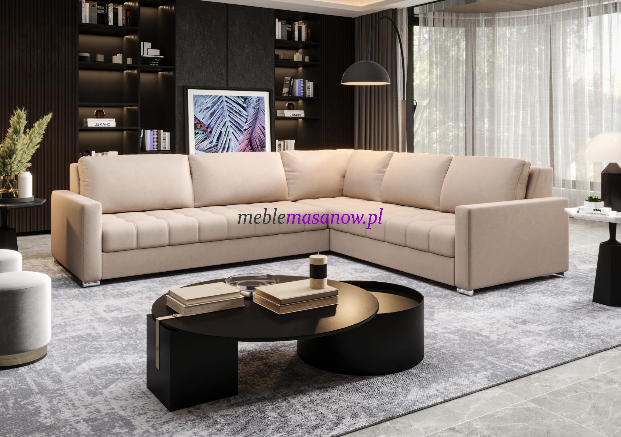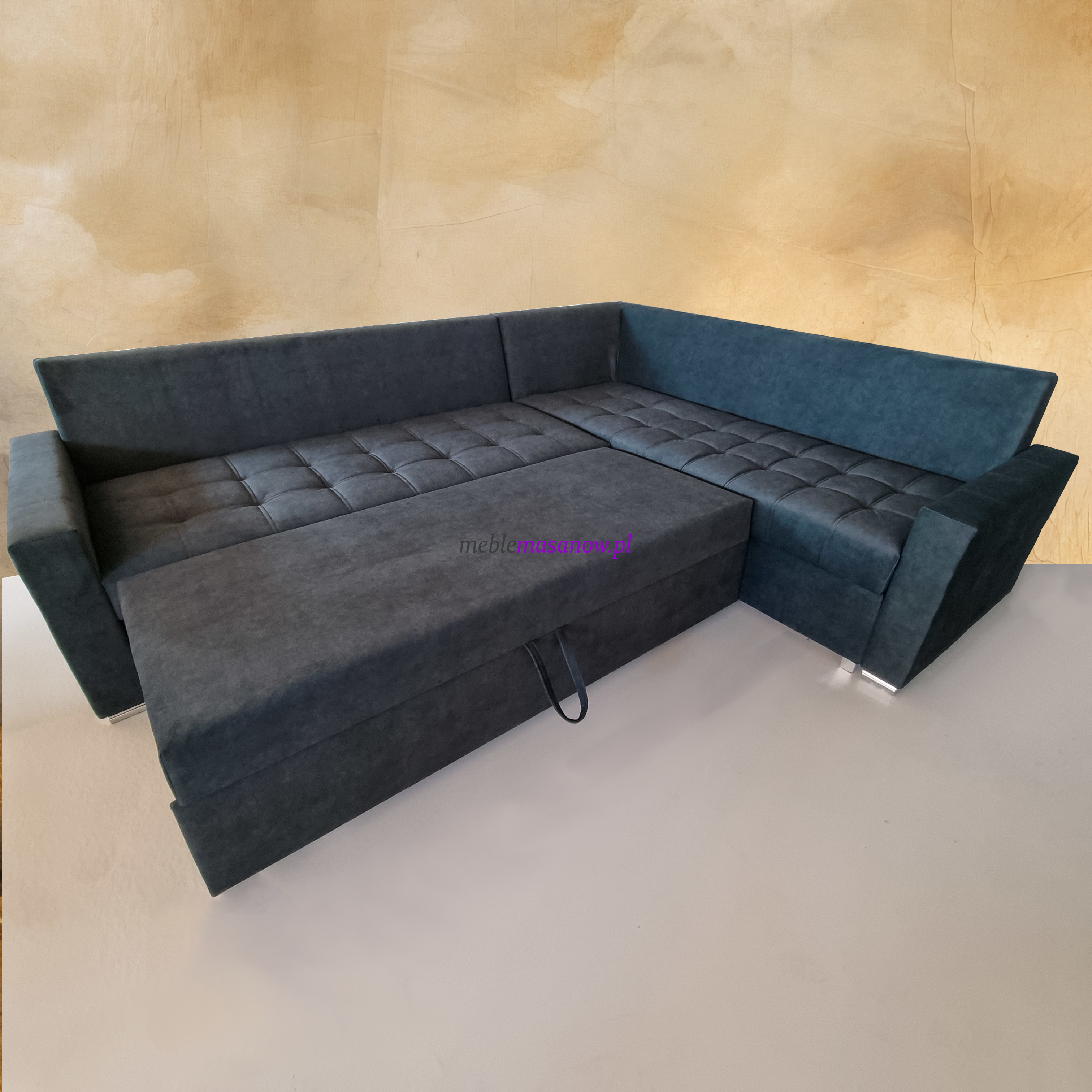 Zaprojektowany z myślą o relaksie, narożnik posiada miękkie poduchy oparciowe oraz pikowane siedzisko wypełnione trwałą gąbką, która dopasowuje się do kształtu ciała. Dzięki temu zapewnia komfort nawet podczas wielogodzinnego wypoczynku – czy to z książką, przed telewizorem, czy z rodziną przy kawie.