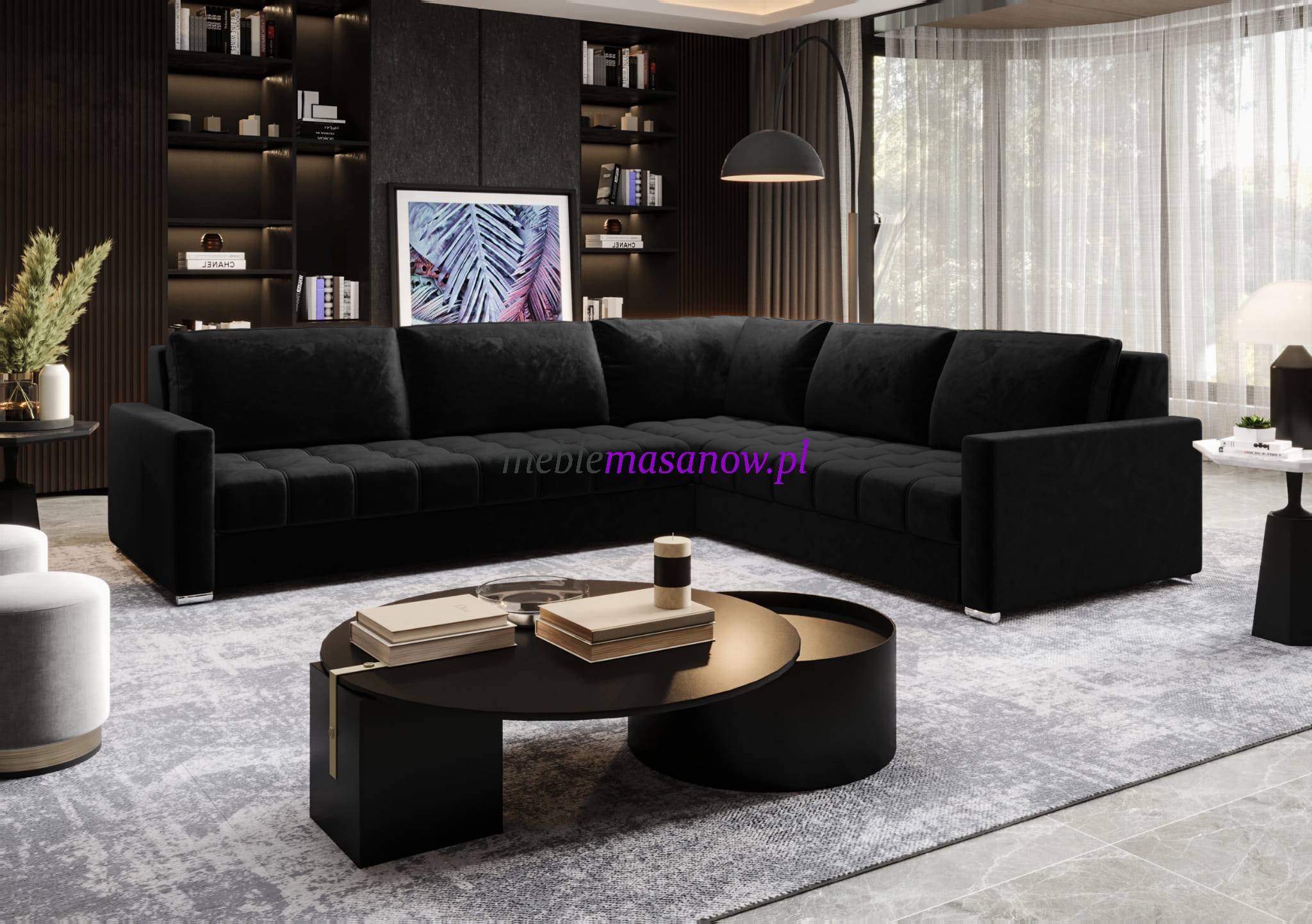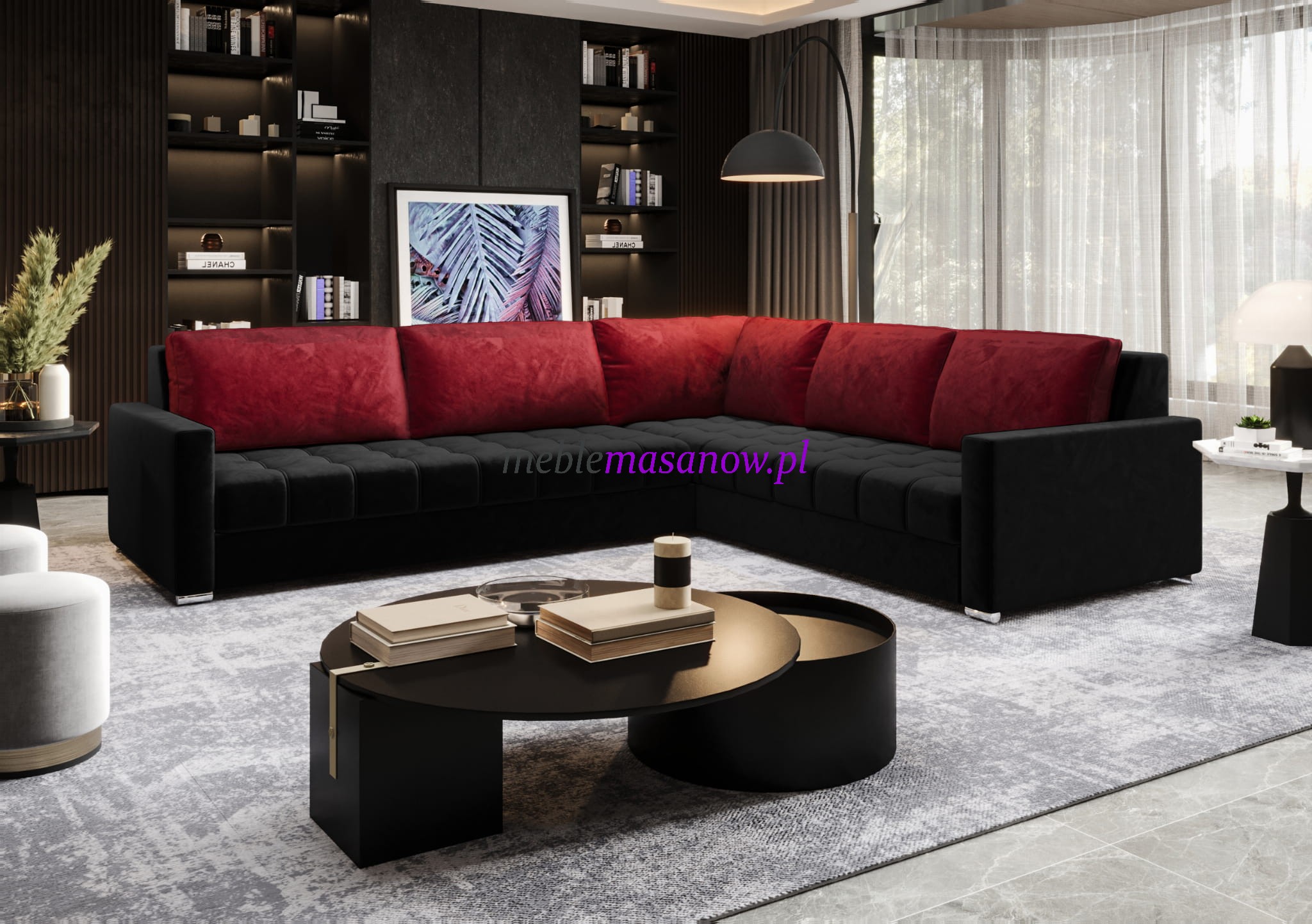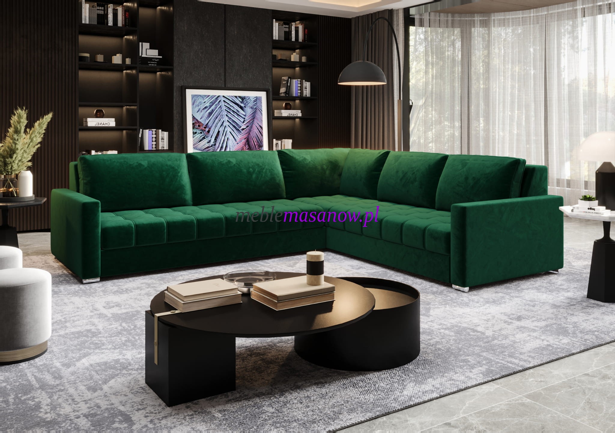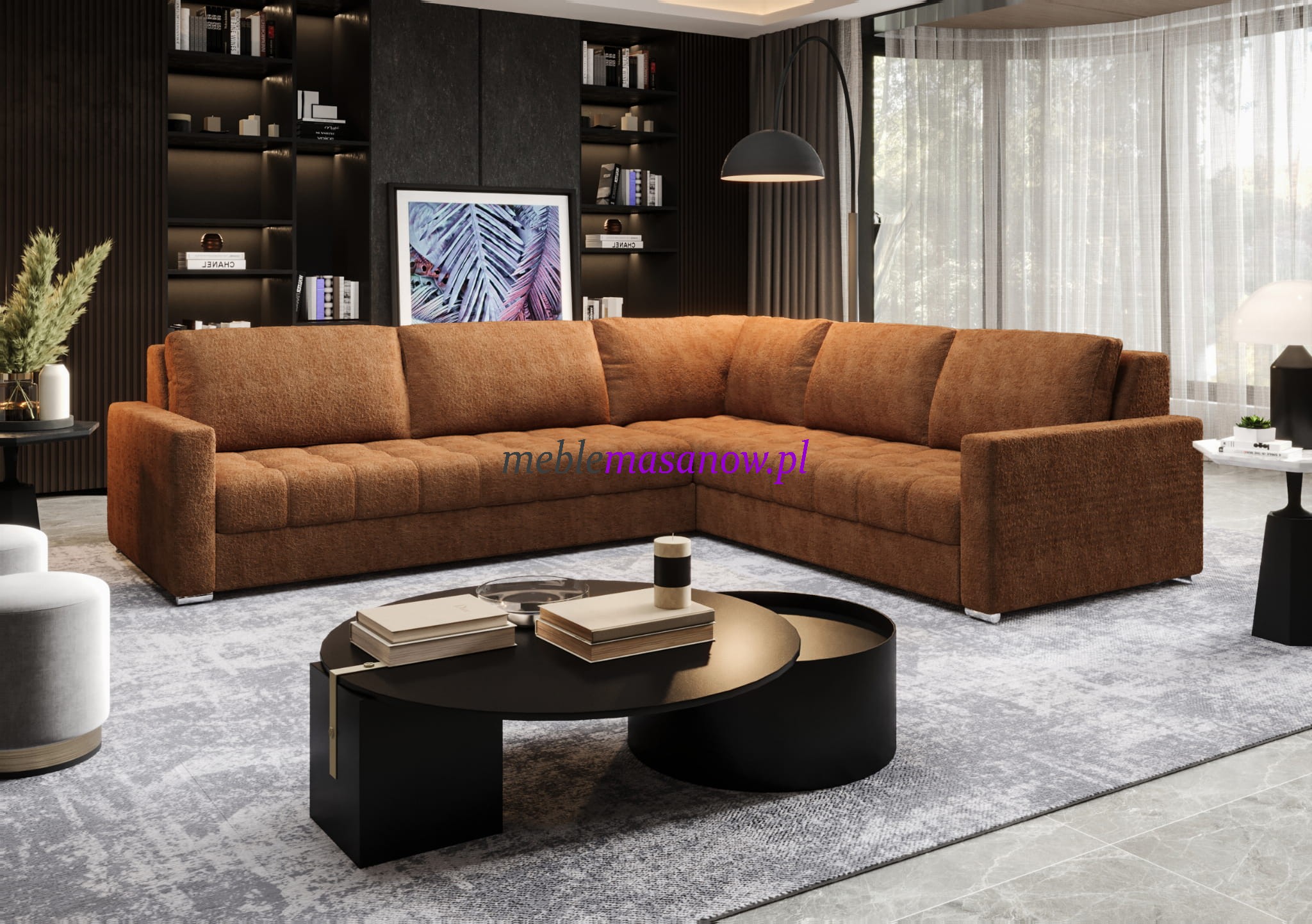 Zaprojektowany z myślą o relaksie, narożnik posiada miękkie poduchy oparciowe oraz pikowane siedzisko wypełnione trwałą gąbką, która dopasowuje się do kształtu ciała. Dzięki temu zapewnia komfort nawet podczas wielogodzinnego wypoczynku – czy to z książką, przed telewizorem, czy z rodziną przy kawie.