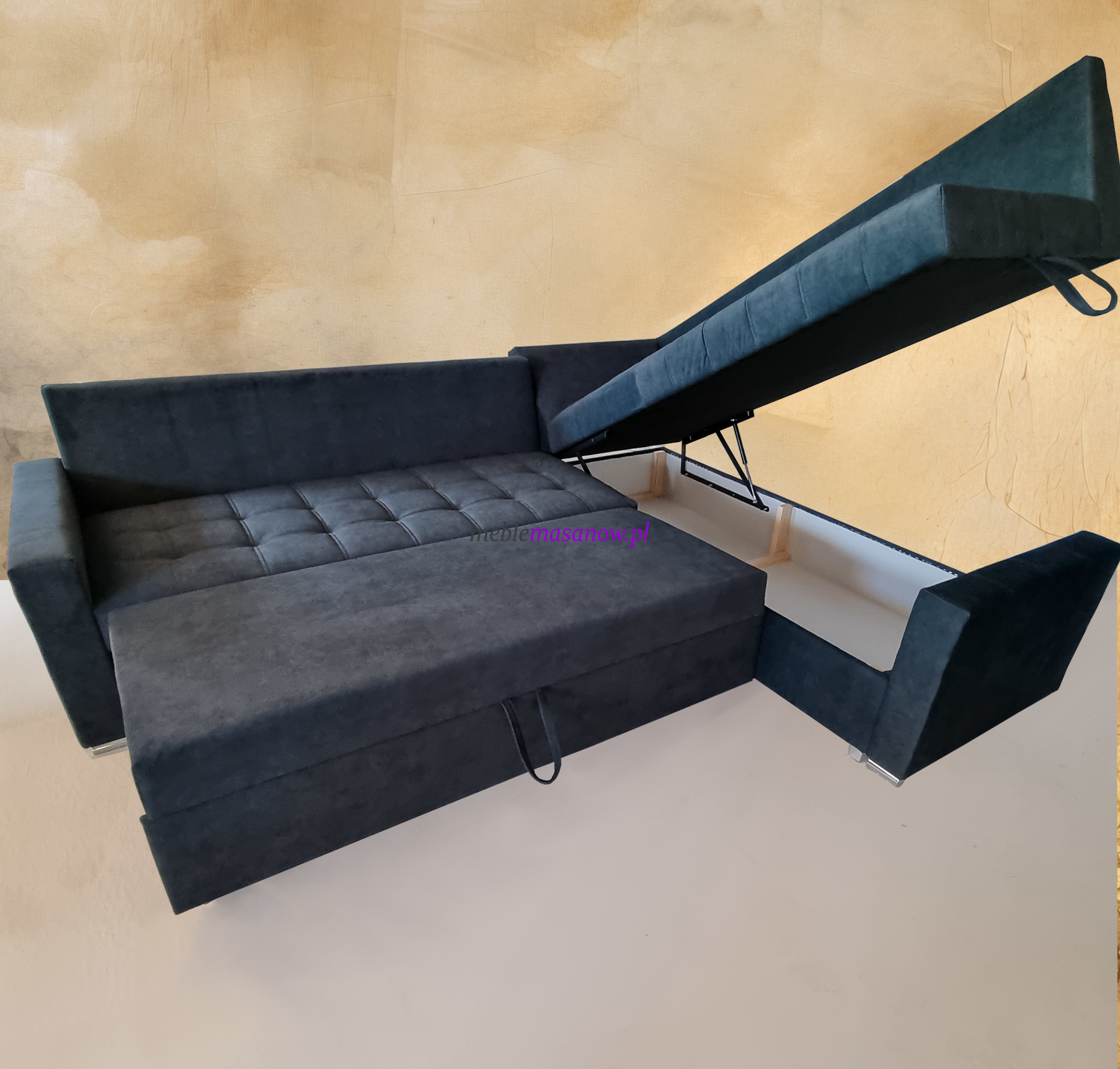 Narożnik Rodzinny z funkcją spania rozkłada się łatwo i szybko, oferując przestronne, wygodne miejsce do spania dla dwóch osób. To świetne rozwiązanie, gdy chcesz przenocować bliskich lub stworzyć dodatkową przestrzeń do spania w małym mieszkaniu.