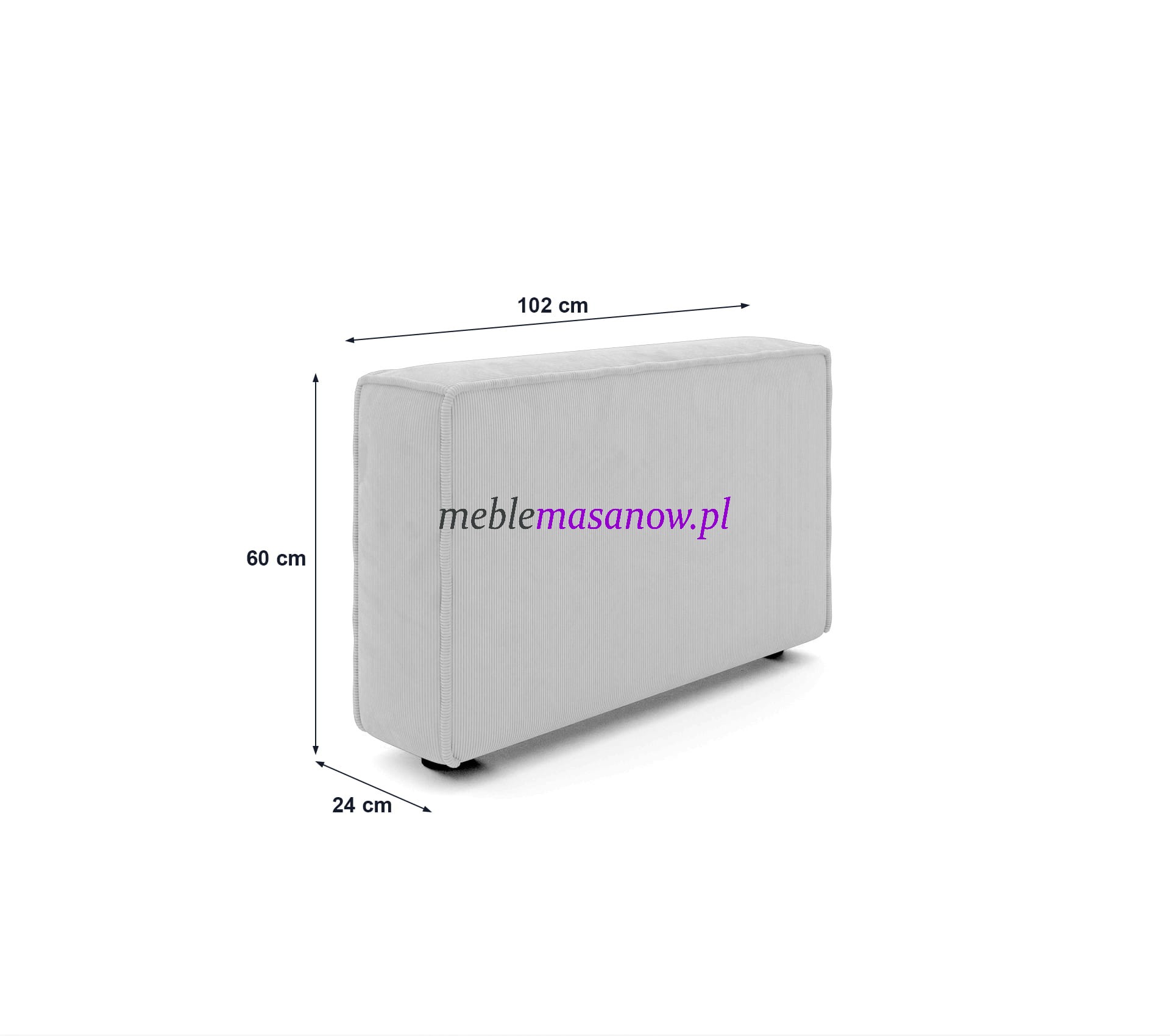 | Bok / podłokietnik (wys. / szer. / gł.) | 60cm / 24cm / 102cm |