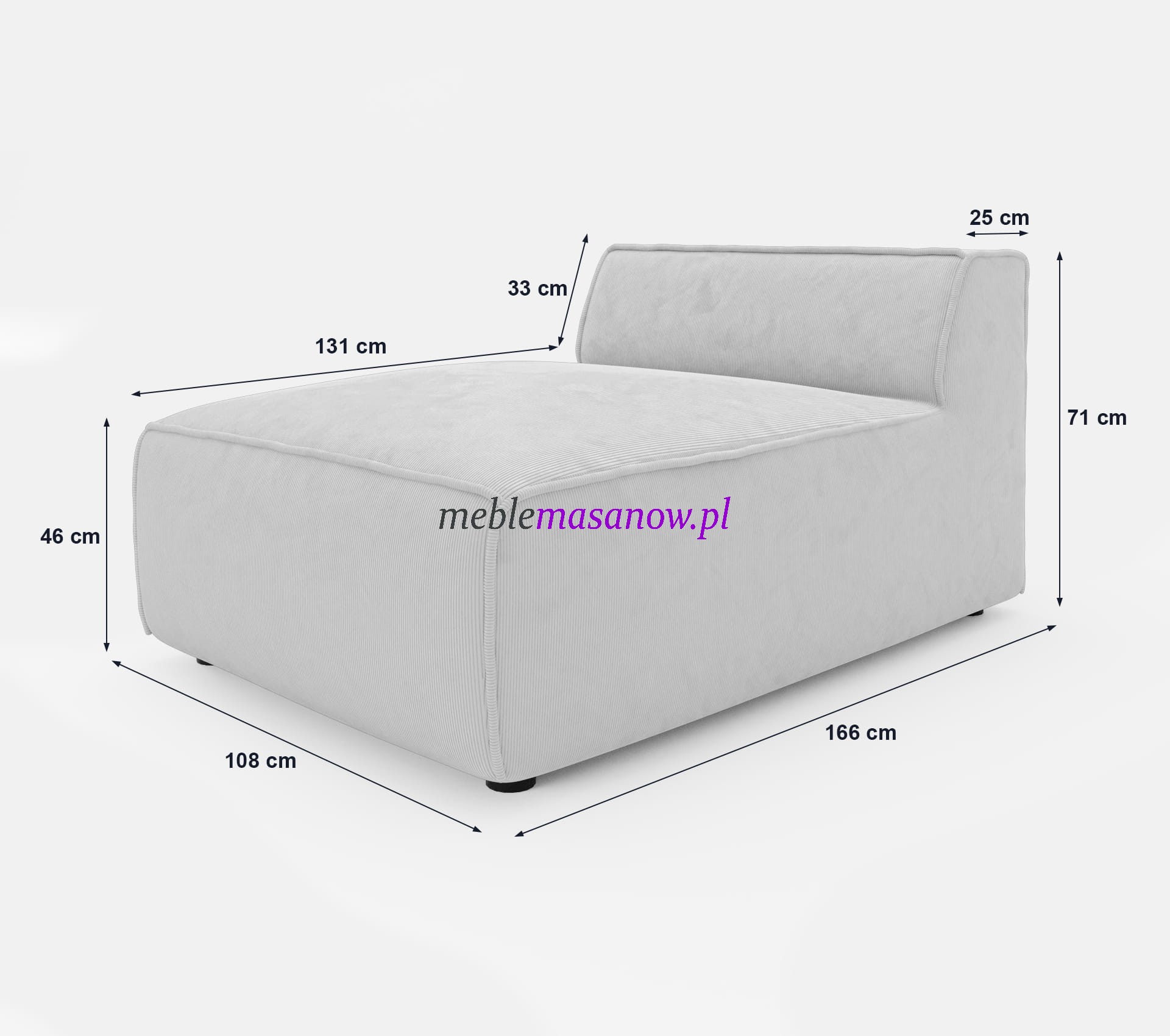 | Otomana (wys. oparcia / szer. / gł. siedziska / gł. oparcia / gł. ) | 33cm / 108cm / 131cm / 25cm / 166cm |