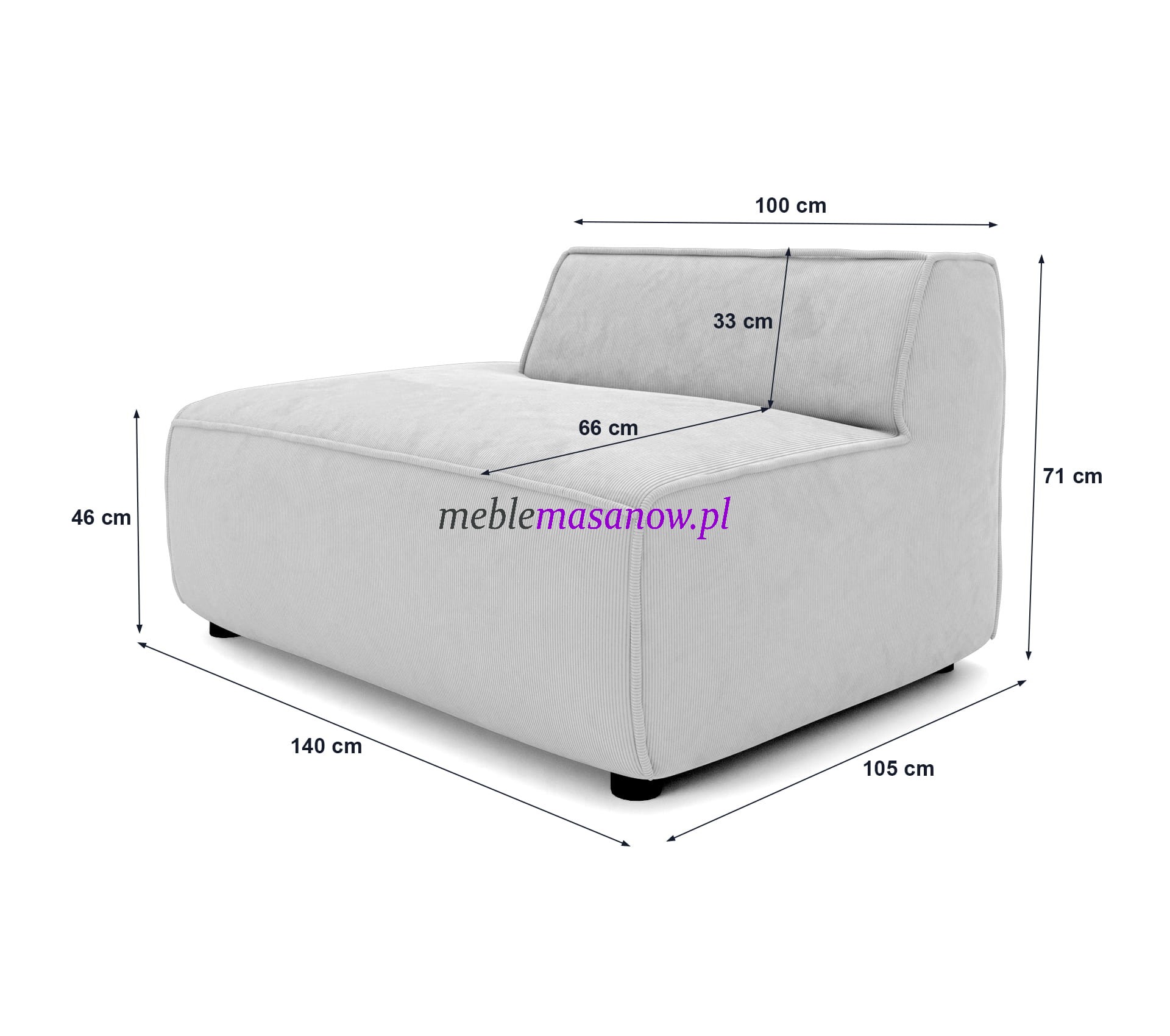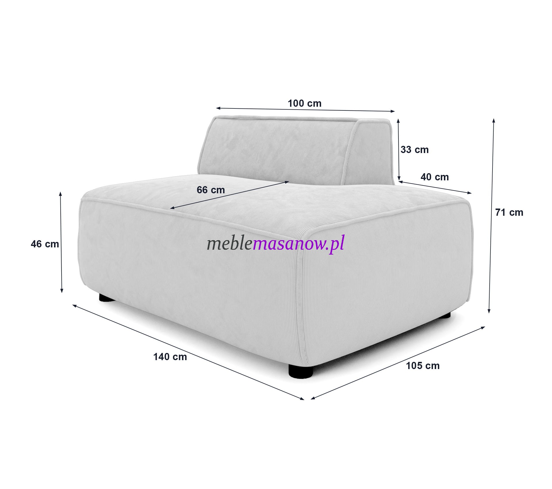| Szezlong (wys. oparcia / szer. / gł. siedziska / dł. oparcia) | 33cm / 140cm / 66cm / 100cm |