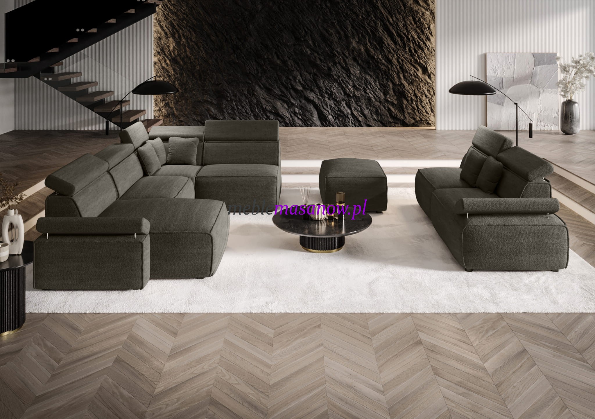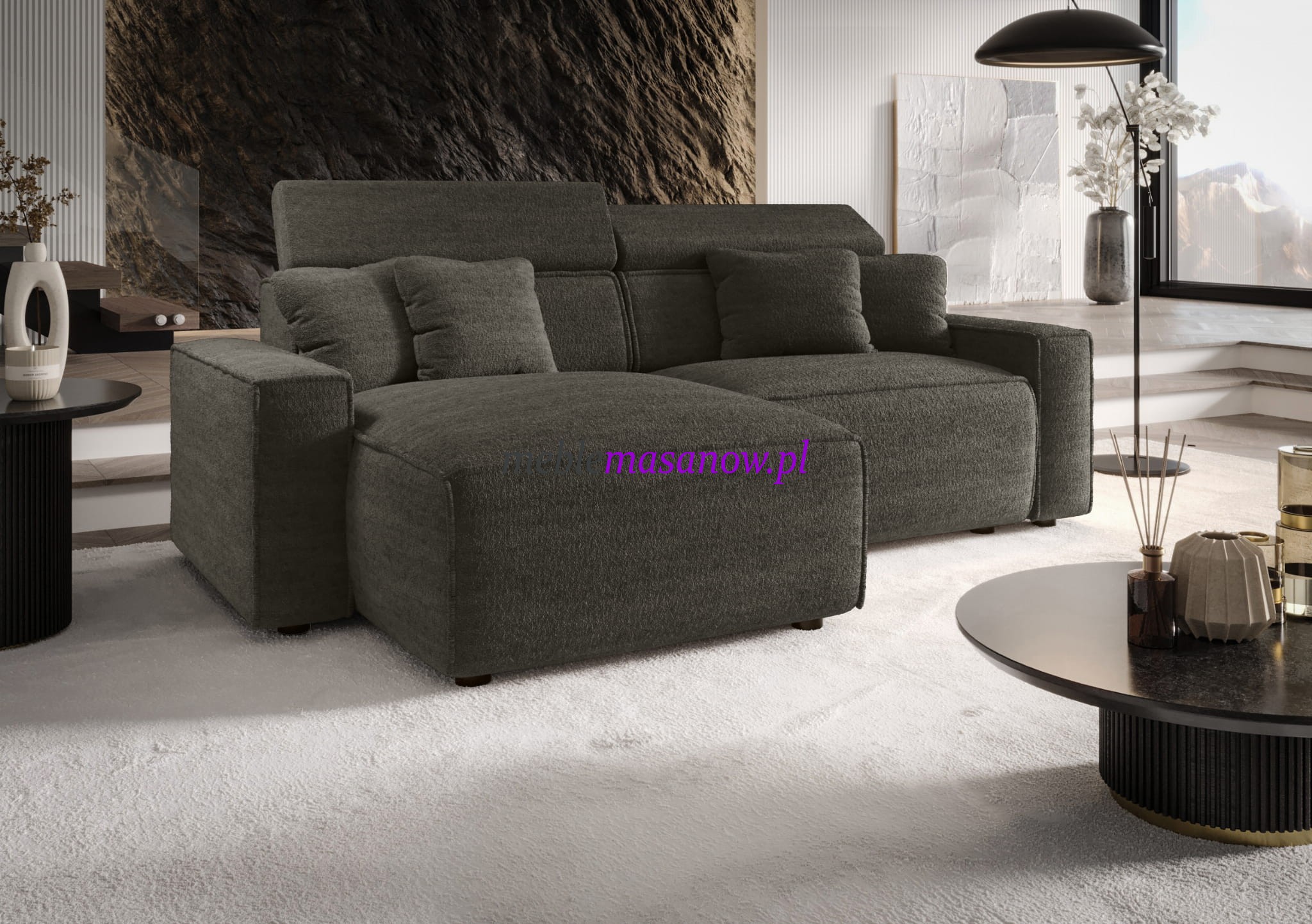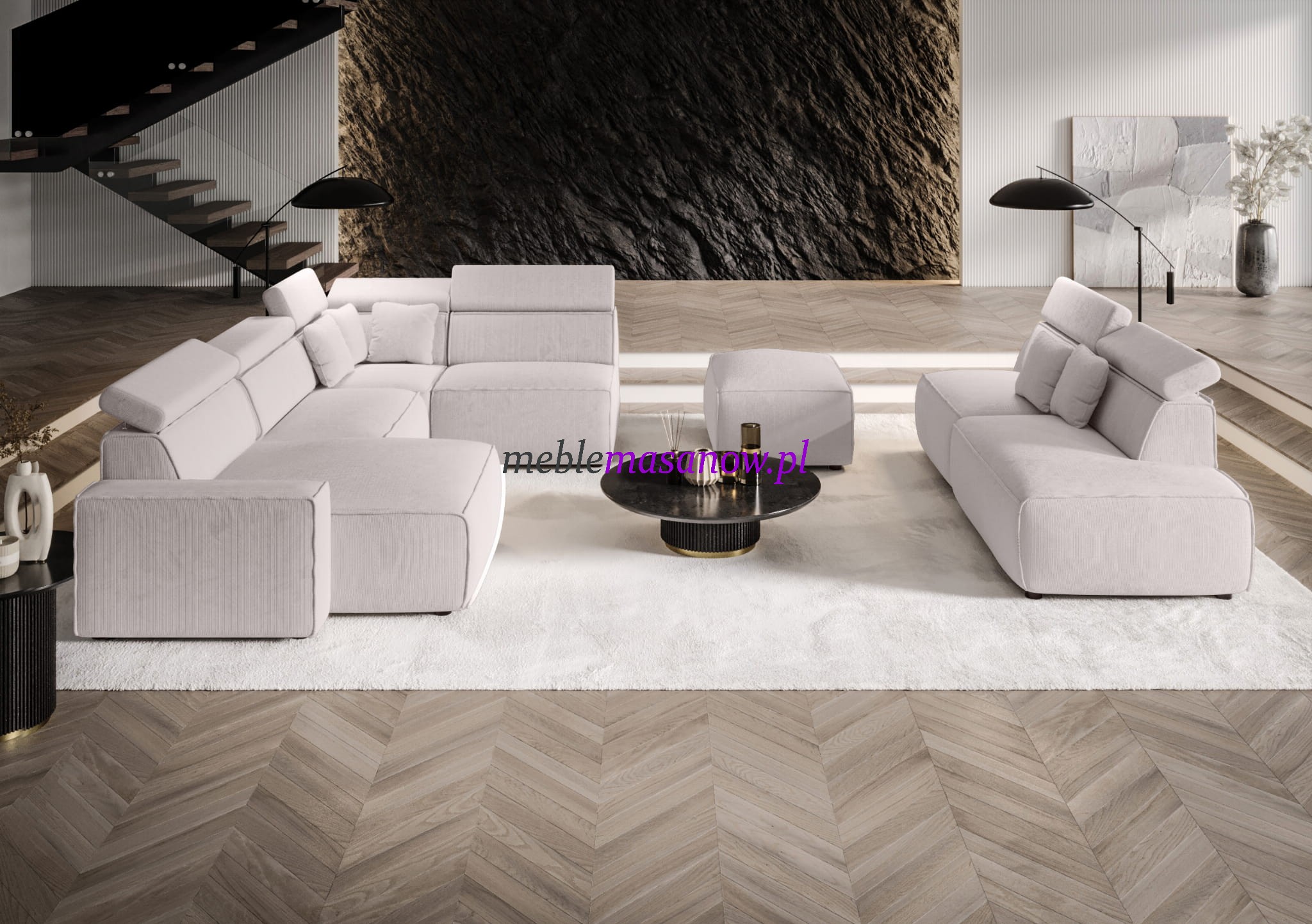 Euforia Grande Iberia nie udaje komfortu — on go definiuje. To narożnik modułowy klasy wyższej, stworzony dla osób, które oczekują od mebla więcej niż tylko wyglądu. Tutaj forma wynika z funkcji, a jakość nie kończy się na tkaninie.