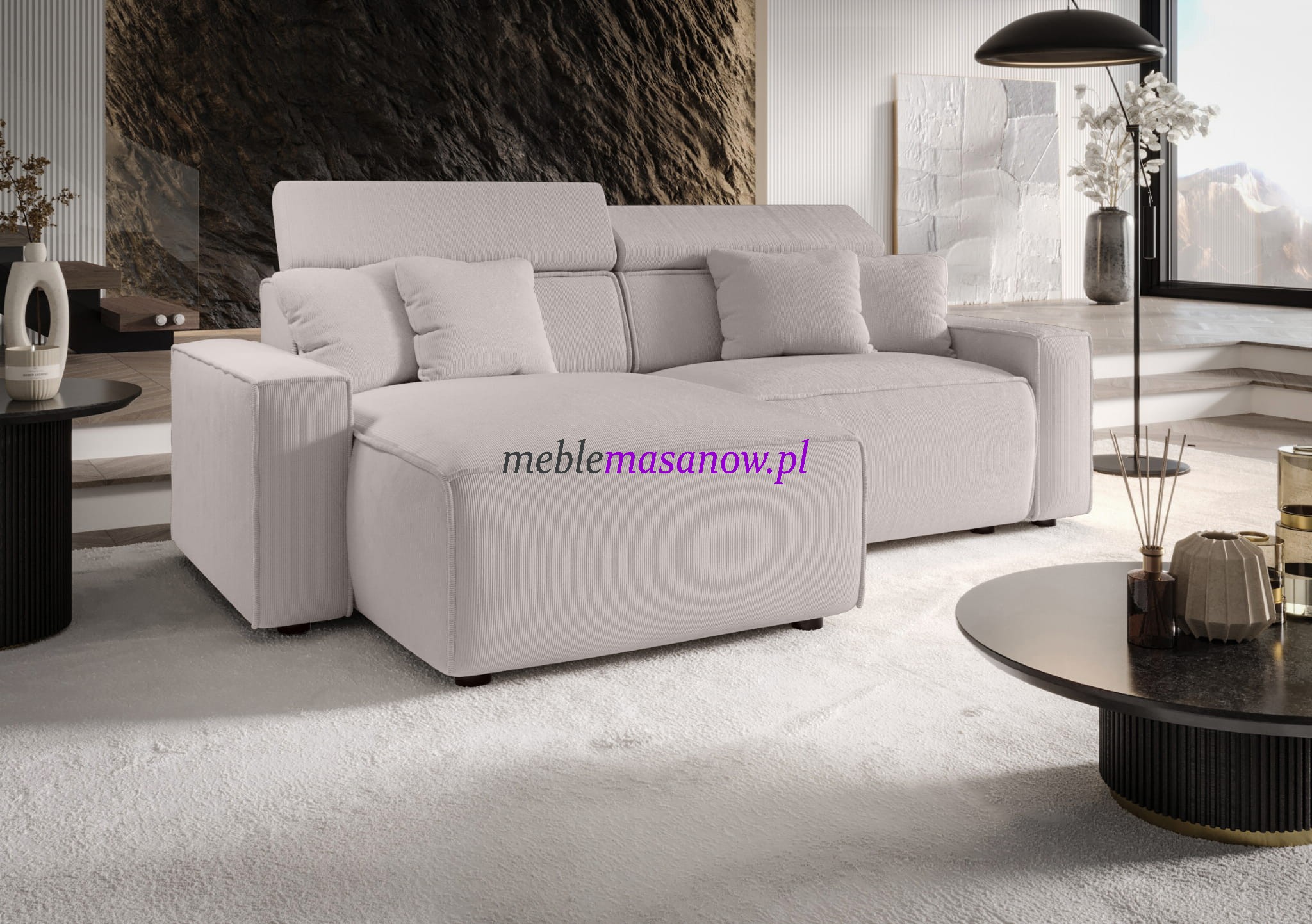 - Tapicerka: tkaniny łatwo czyszczące, sztruks premium, wysokie gramatury
