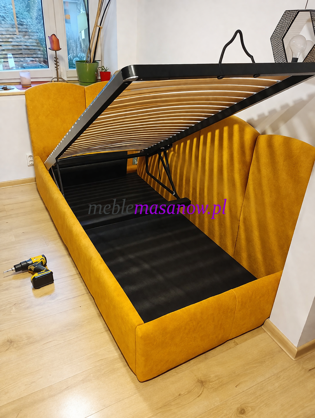 - stelaż metalowy w opcji za + 300 zł w przypadku łóżka otwieranego od dłuższego boku,