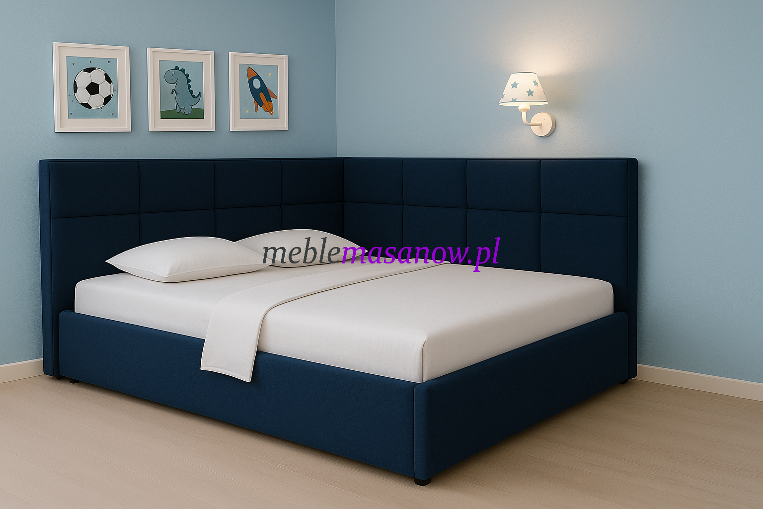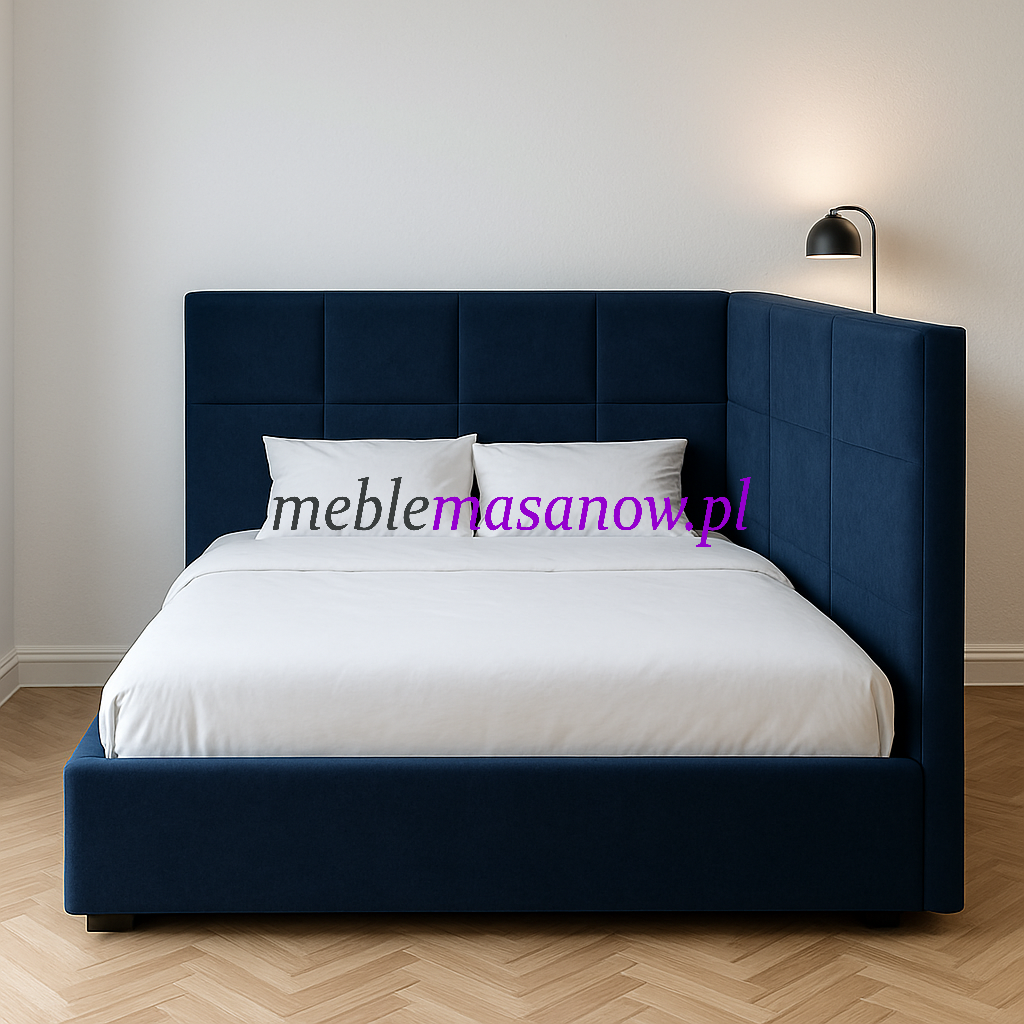 To nie tylko miejsce do spania – to centralny punkt aranżacji wnętrza. Granatowy kolor pięknie kontrastuje z jasnymi dodatkami, nadając wnętrzu elegancji i wyjątkowego stylu.