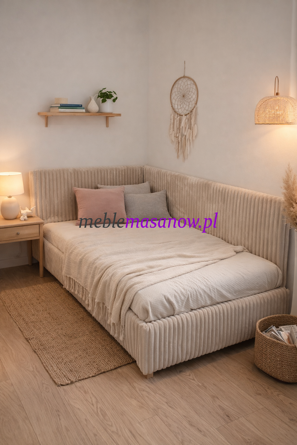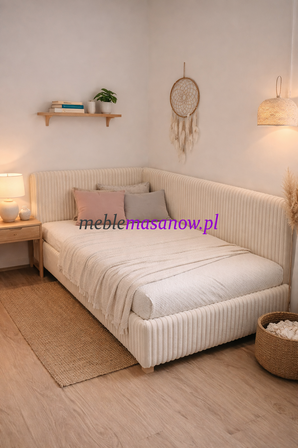 Stabilna konstrukcja oraz staranne wykonanie gwarantują trwałość i wygodę na lata, a uniwersalna stylistyka pozwala łatwo dopasować łóżko do różnych aranżacji – od nowoczesnych, przez skandynawskie, aż po bardziej przytulne, boho wnętrza.