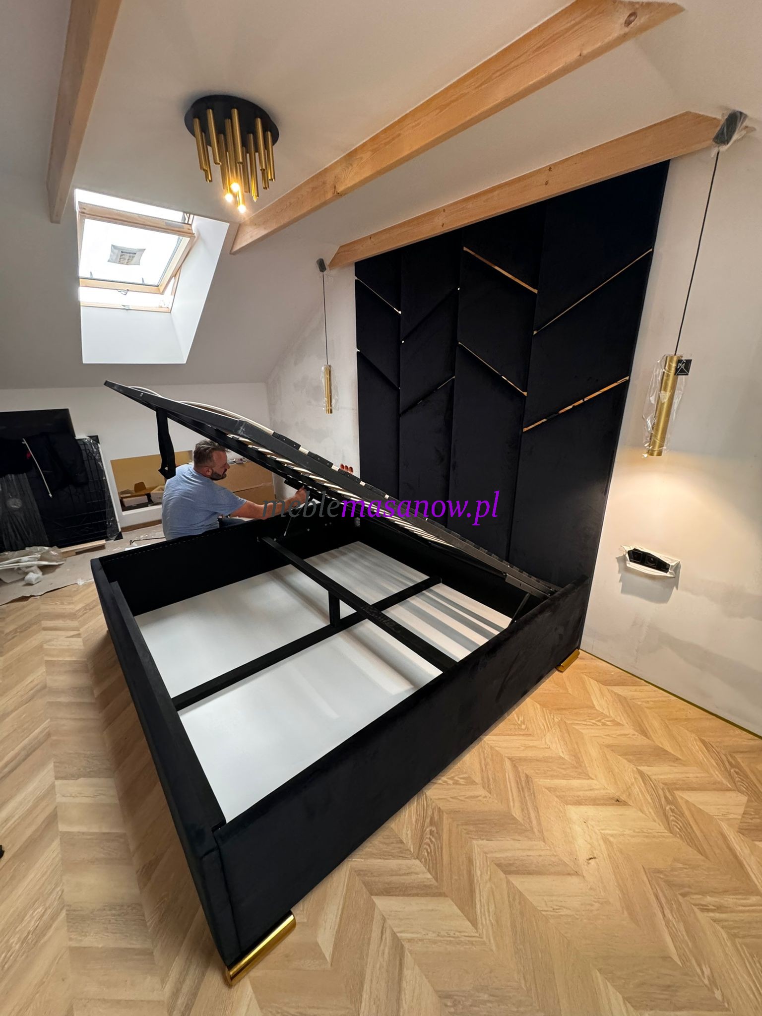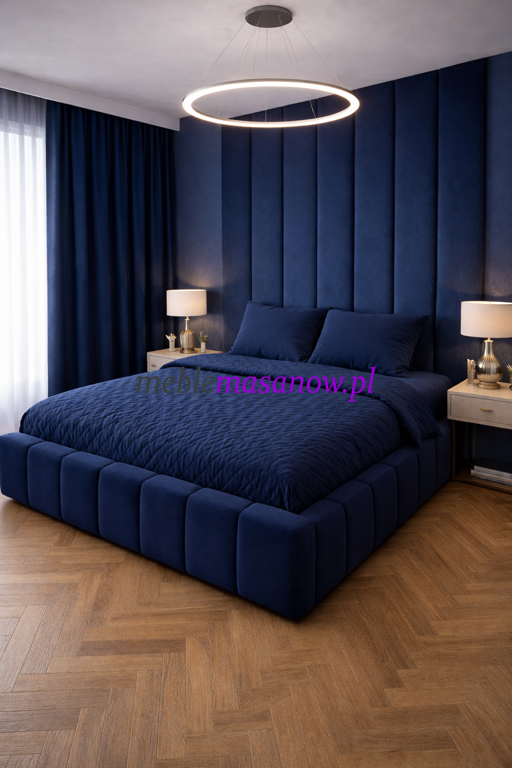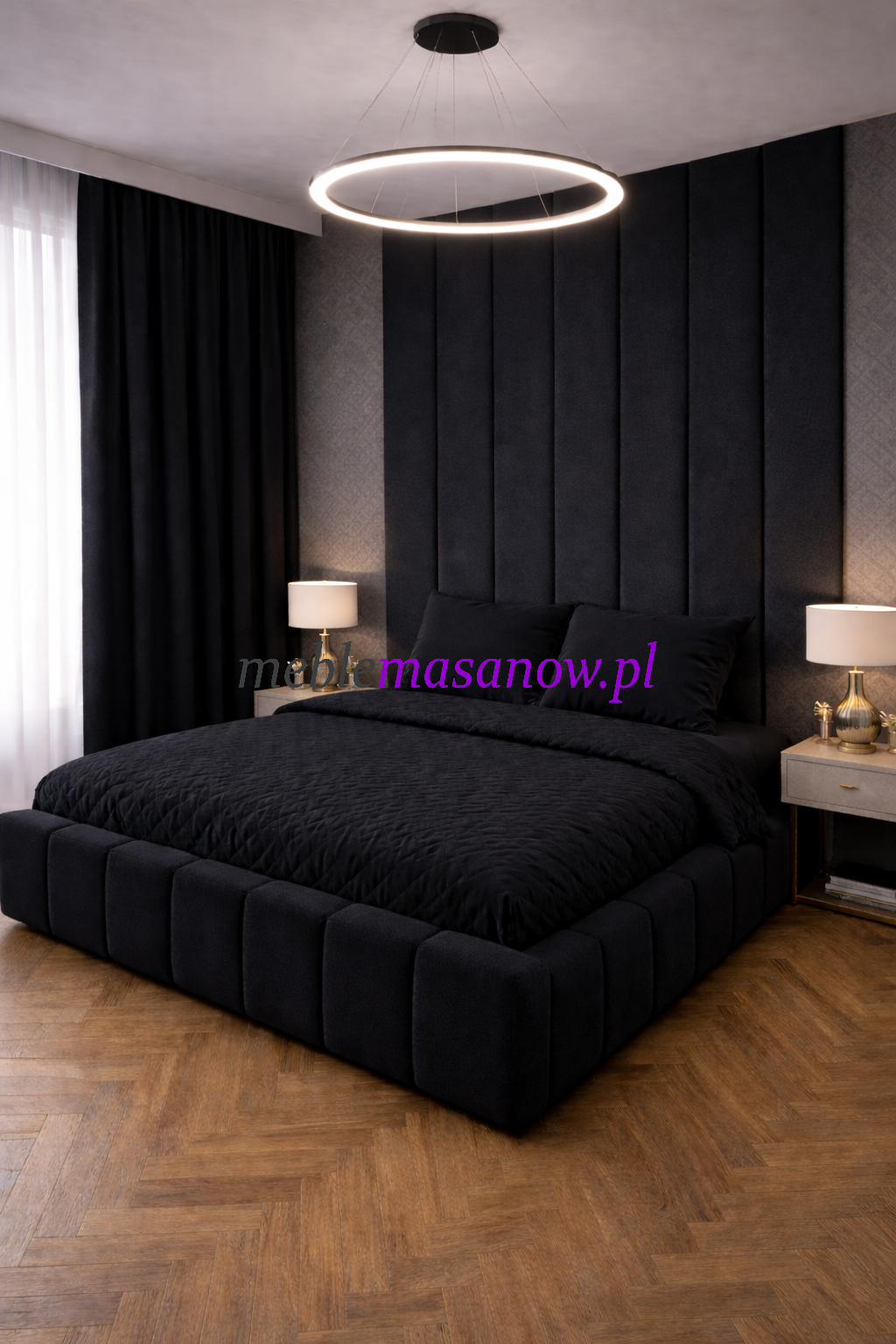 Prezentowane łóżko tapicerowane zachwyca masywną, elegancką bryłą oraz wysokim komfortem użytkowania. Bok łóżka został starannie wykończony miękką tapicerką o grubości 10 cm, dzięki czemu jest przyjemny w dotyku i nadaje całości luksusowego charakteru.