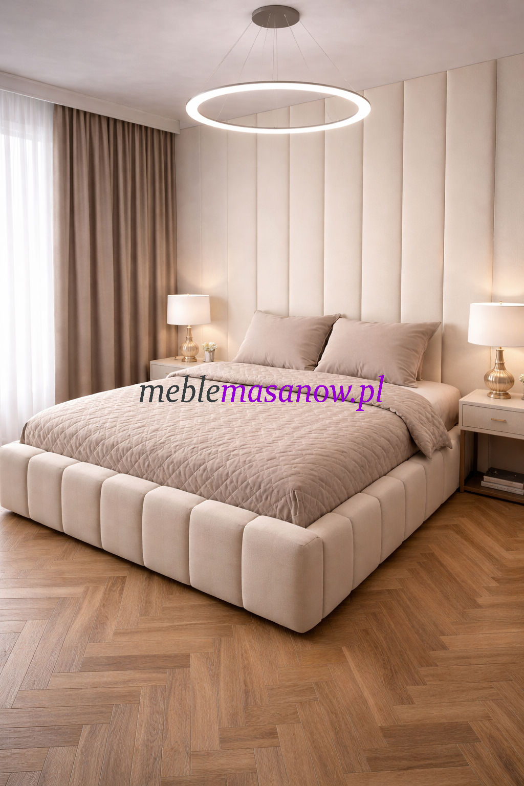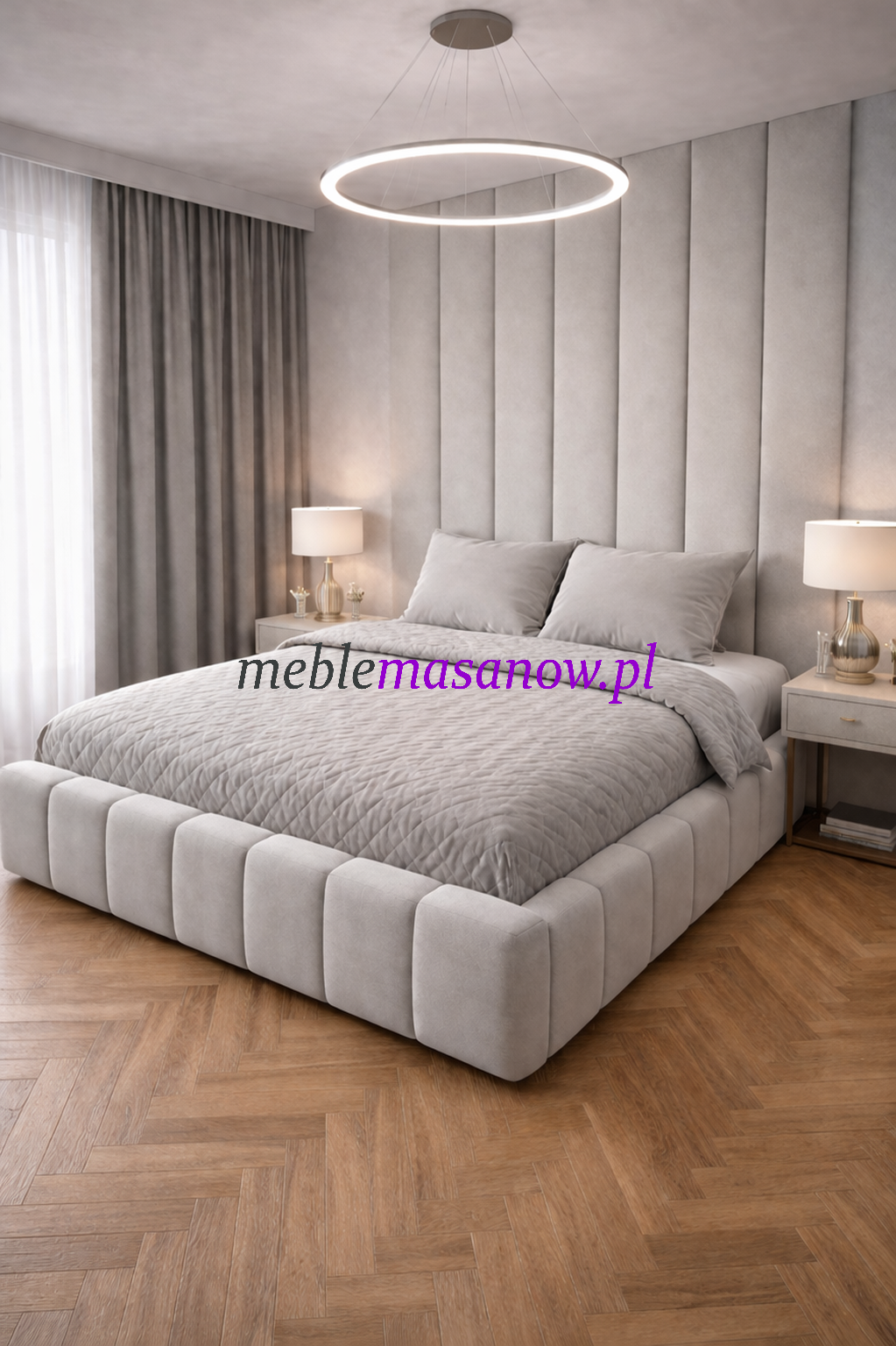 Stwórz wyjątkową strefę relaksu dzięki zestawowi, który łączy eleganckie łóżko tapicerowane oraz designerskie panele tapicerowane. To doskonały wybór do sypialni, w której liczy się wygoda, estetyka i najwyższa jakość wykonania. Jasna kolorystyka, miękkie formy oraz nowoczesny styl sprawiają, że wnętrze staje się przytulne i ekskluzywne.