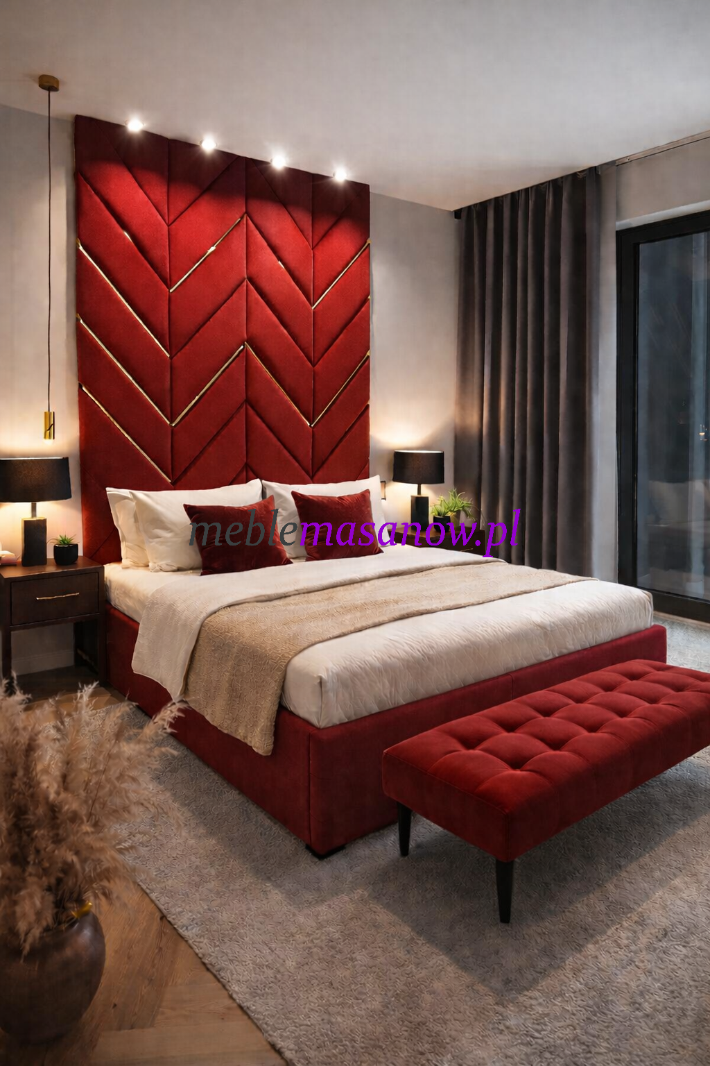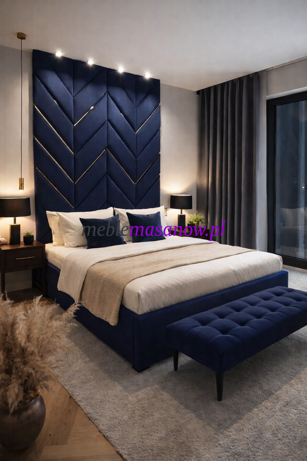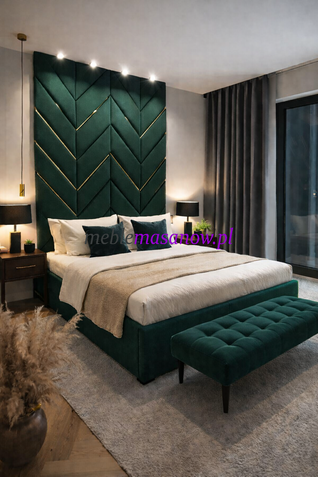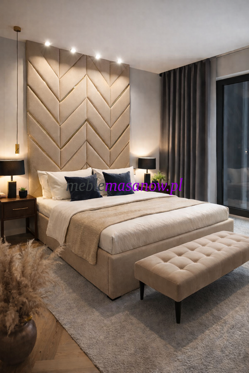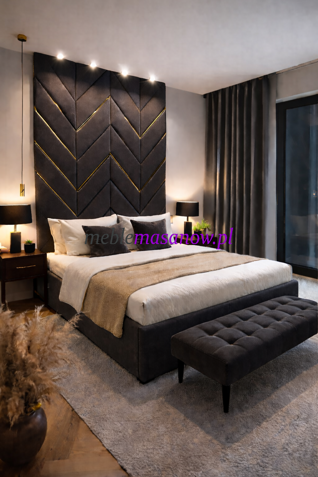 Nowoczesne panele i wygodne łóżko tapicerowane, tworząc spójny i elegancki komplet do sypialni.